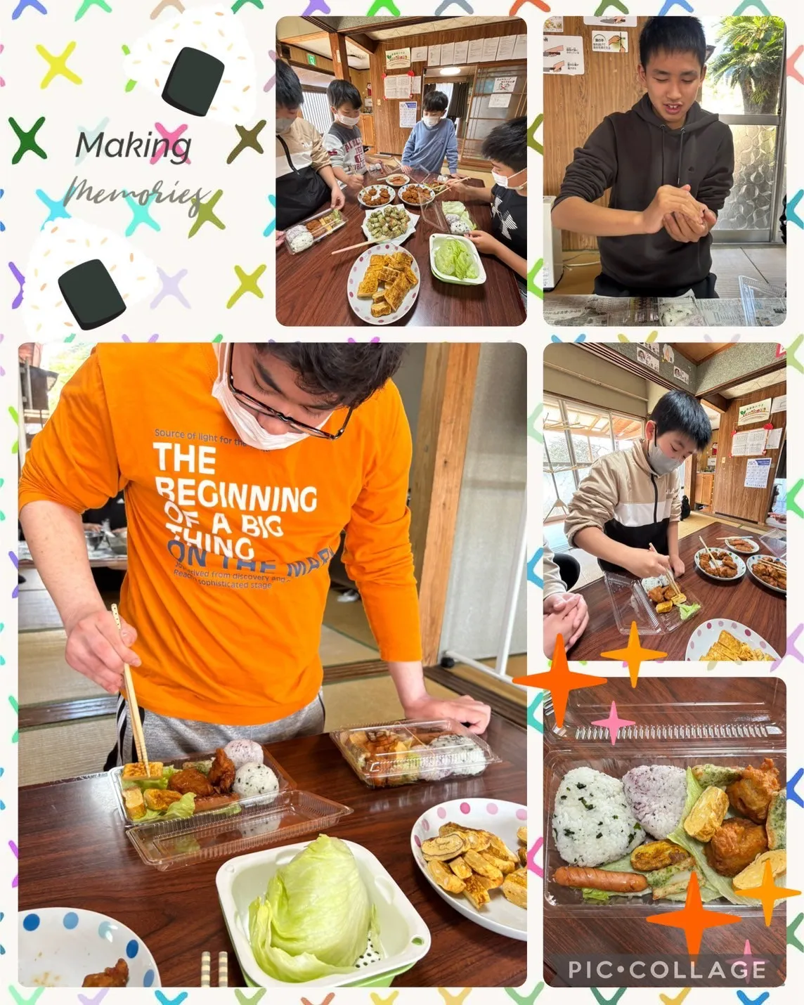 まず、てらこやに着いたら朝礼の後みんなで、自分のお弁当に入れるおにぎりを握り、フードパックにおにぎりを入れ、おかずも好きな様に詰めて個性のあるお弁当を作っていました🤭