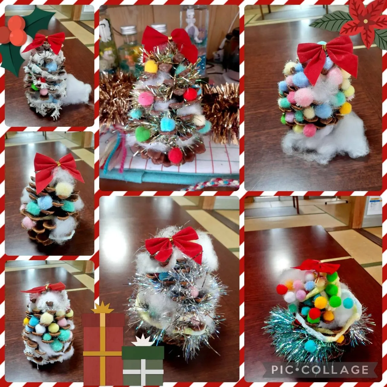 出来上がった松ぼっくりツリーは、現在TERAKOYA内のツリーの近くにクリスマスを楽しみにしている様に可愛く並んで飾られています🎄